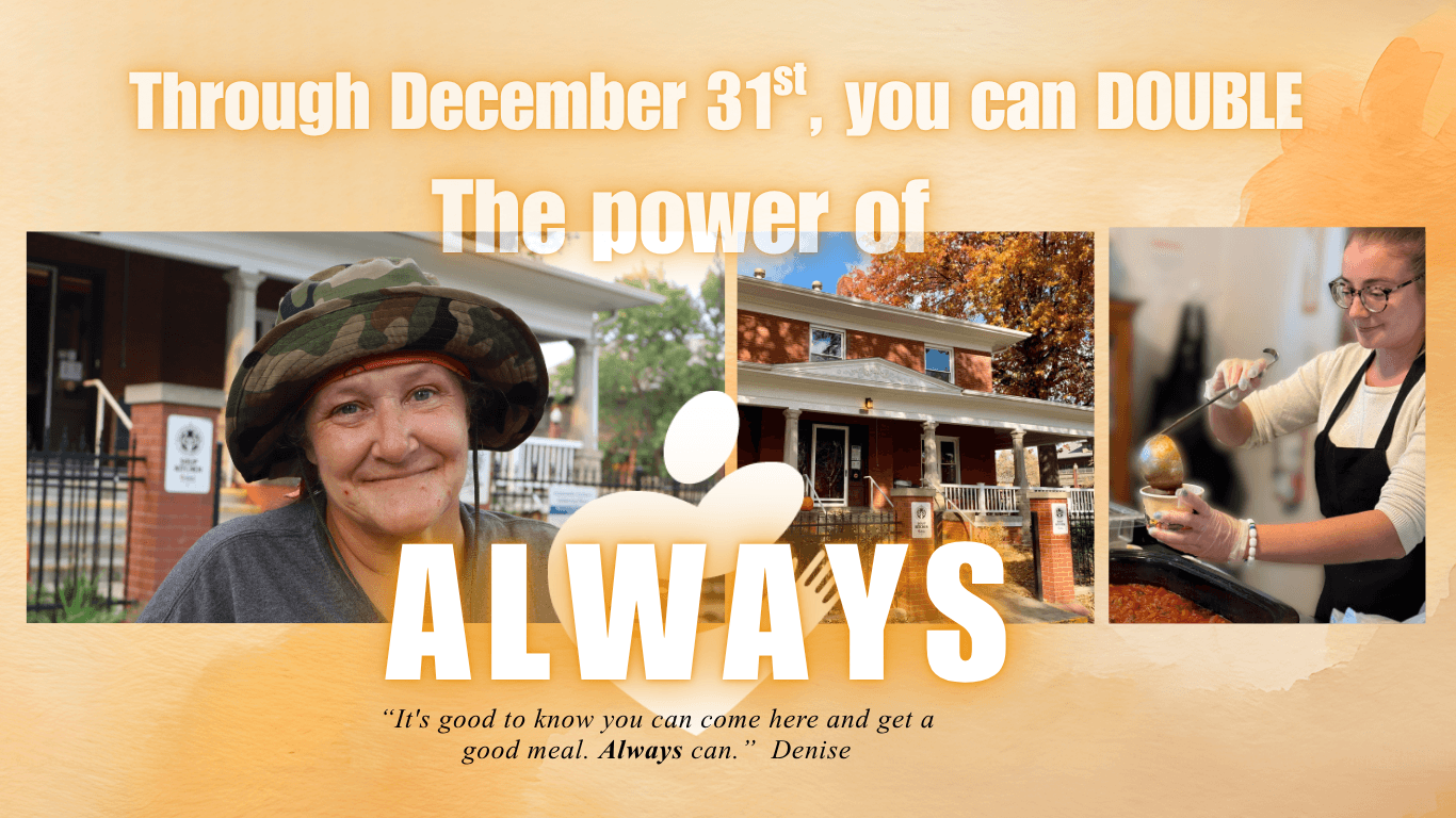 For our neighbors like Denise, the Gathering Place is more than a meal, It's her Always. You know that place; Somewhere you are safe, known, and accepted. That stability is rare for her and for many others.